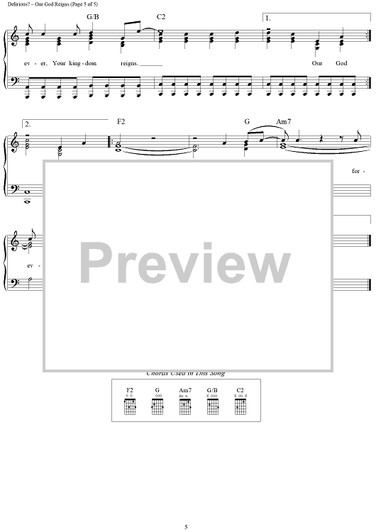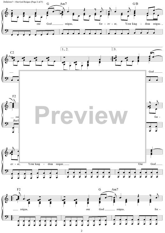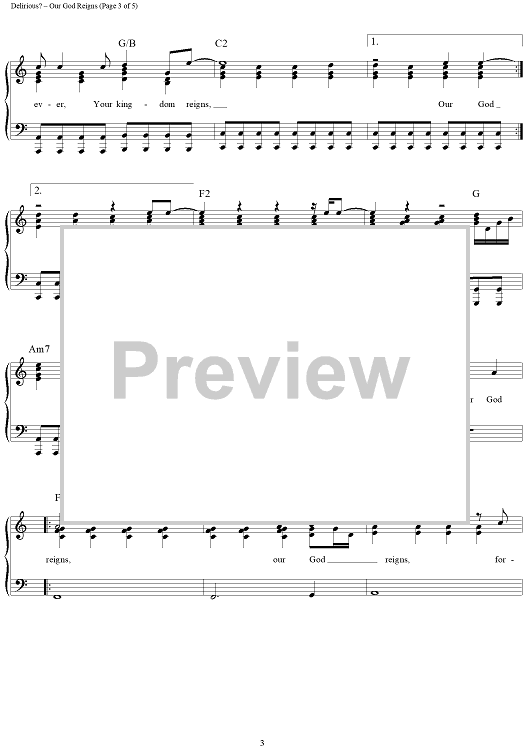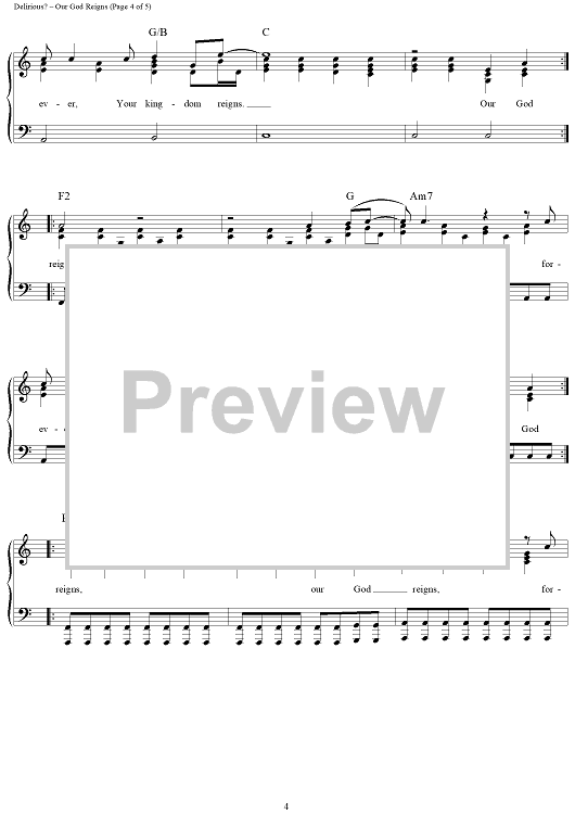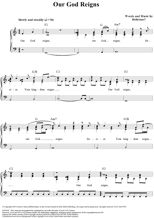 Digital Sheet Music for Our God Reigns by Delirious? scored for Piano/Vocal/Chords; id:319996