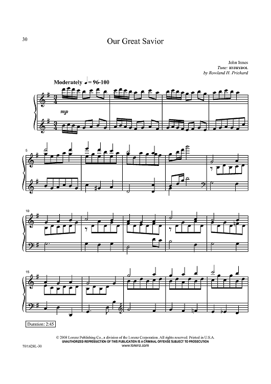 Digital Sheet Music for Our Great Savior by John Innes scored for Piano Solo; id:434206