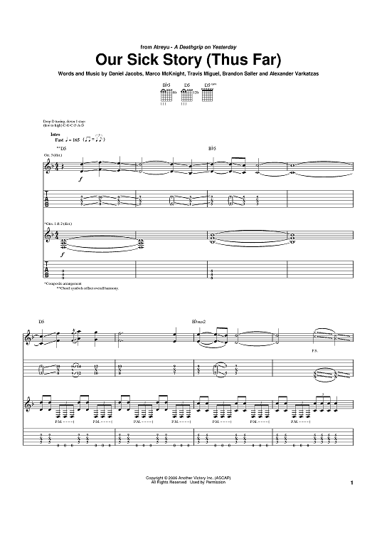 Digital Sheet Music for Our Sick Story (Thus Far) by Atreyu, Daniel Jacobs, Marco McKnight, Travis Miguel, Brandon Saller, Alexander Varkatzas scored for Guitar Tab; id:394556