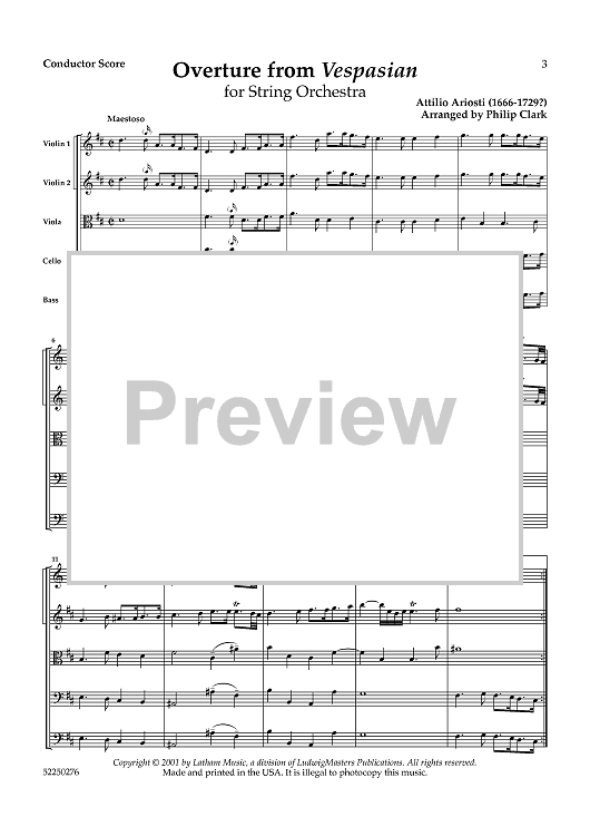 Digital Sheet Music for Overture from Vespasian - Score by Philip Clark, Attilio Ariosti scored for String Orchestra; id:458689
