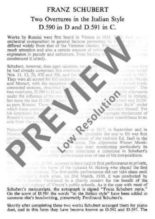 "Overture in the Italian Style C major - Full Score" Sheet Music by Franz Schubert
