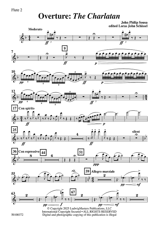 Digital Sheet Music for Overture: The Charlatan - Flute 2 by John Philip Sousa, Loras John Schissel scored for Concert Band; id:507381