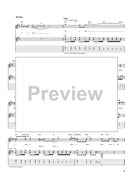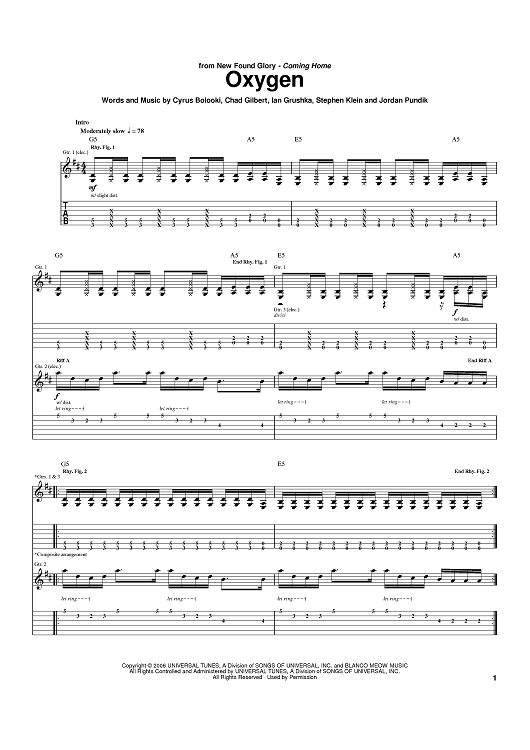 Digital Sheet Music for Oxygen by New Found Glory, Cyrus Bolooki, Chad Gilbert, Ian Grushka, Steve Klein, Jordan Pundik scored for Guitar Tab; id:397803
