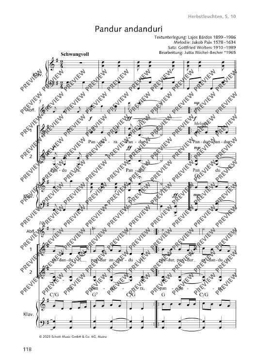 Digital Sheet Music for Pandur andanduri by Gottfried Wolters, Jacob Paix, Jutta Michel-Becher scored for For Two Part Choir And Piano, Alto Recorder Ad Lib.; id:500035