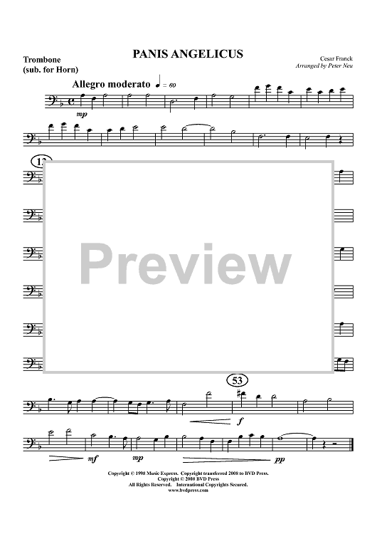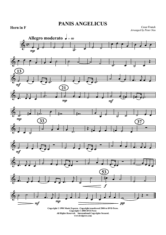 "Panis Angelicus - Horn in F (plus optional part for Trombone)" Sheet Music by César Franck