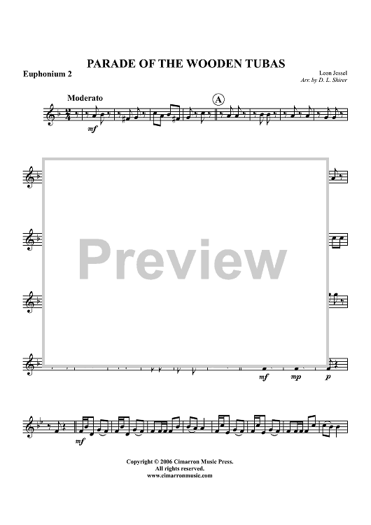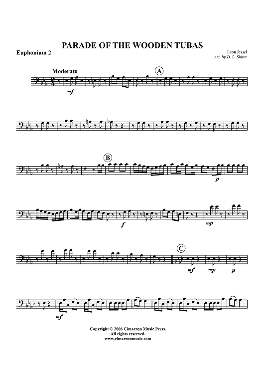 Digital Sheet Music for Parade of the Wooden Tubas - Euphonium 2 BC/TC by Leon Jessel, D. L. Shirer scored for Tuba Quartet; id:355238