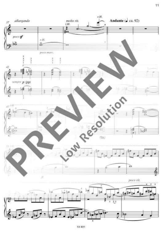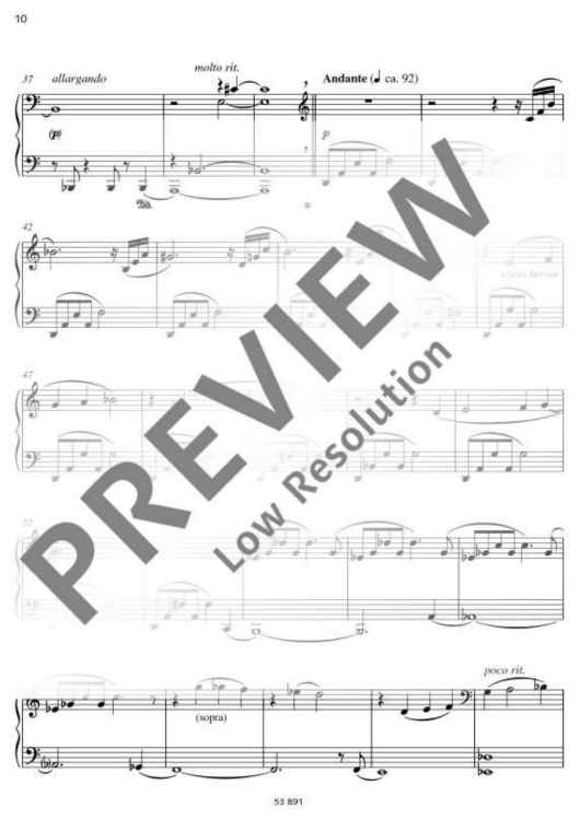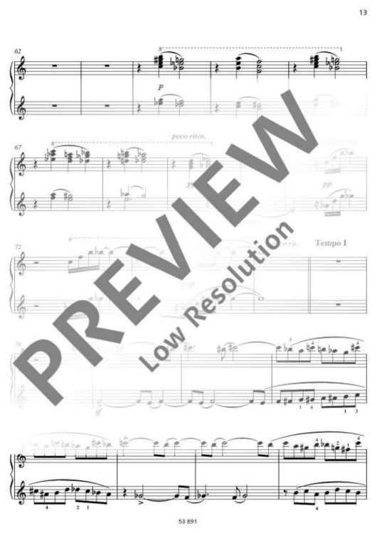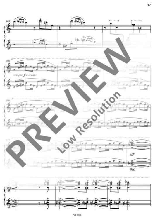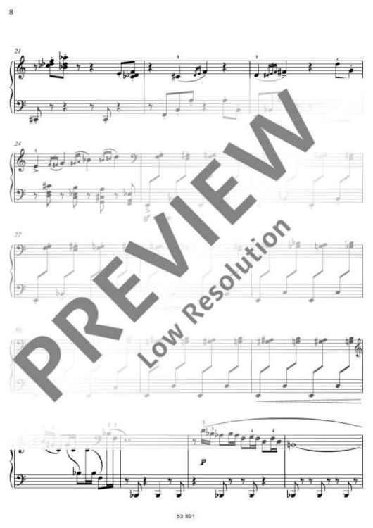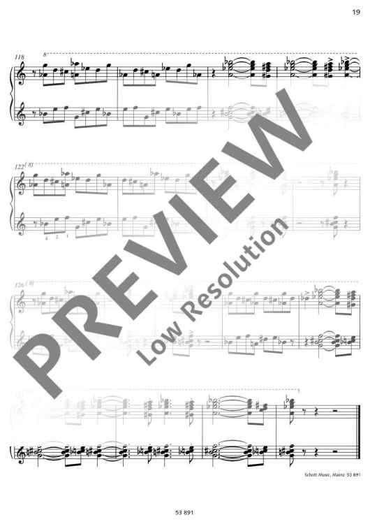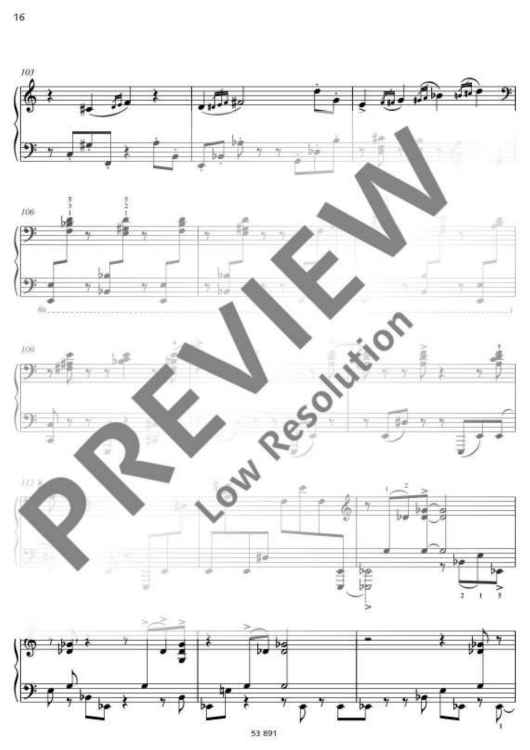 The composer Eduard Pütz (1911–2000) from Cologne was influenced by the composition technique of Hindemith and Stravinsky, yet he also admired Messiaen and valued the music of Karlheinz Stockhausen. At the same time, he was fascinated by the means of expression of jazz music, and he looked over and over again for ways of achieving a compositional synthesis of these widely separated worlds of sound. Pas de deux which consists of three parts – Molto allegro, Andante and Tempo I – has been composed in free atonality. Its harmony is characterized by fourth chords, its rhythm remains in traditional metrics, subtly pervaded by jazz-inspired rhythmic and melodic impressions. The dance piece for four hands lives on the impulse of a forward movement which stops in the quiet middle part before the final part, a brilliantly intensified recapitulation, leads to a lively coda. The brilliant fireworks for piano duet is now available for the first time.