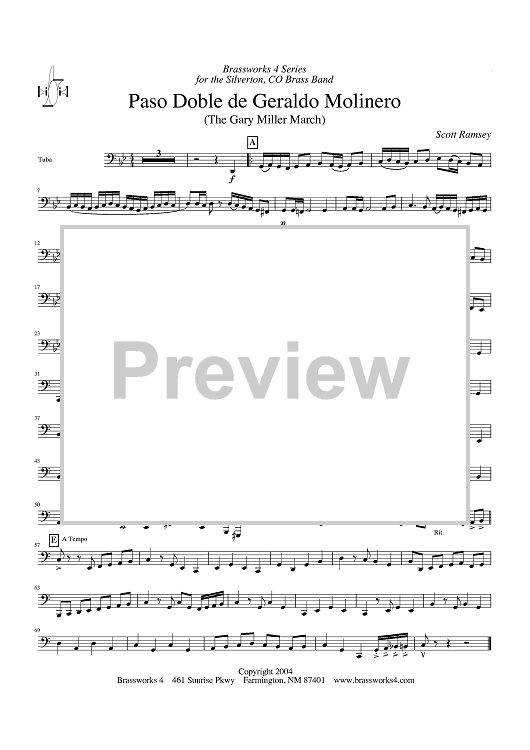 Digital Sheet Music for Paso Doble de Geraldo Molinero (The Gary Miller March) - Tuba by Scott A. Ramsey scored for Brass Ensemble; id:428215