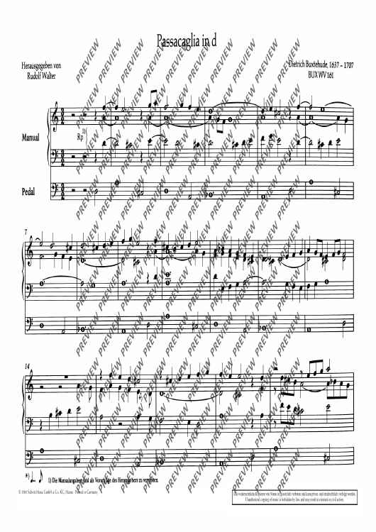 "Passacaglia in d" Sheet Music by Dietrich Buxtehude
