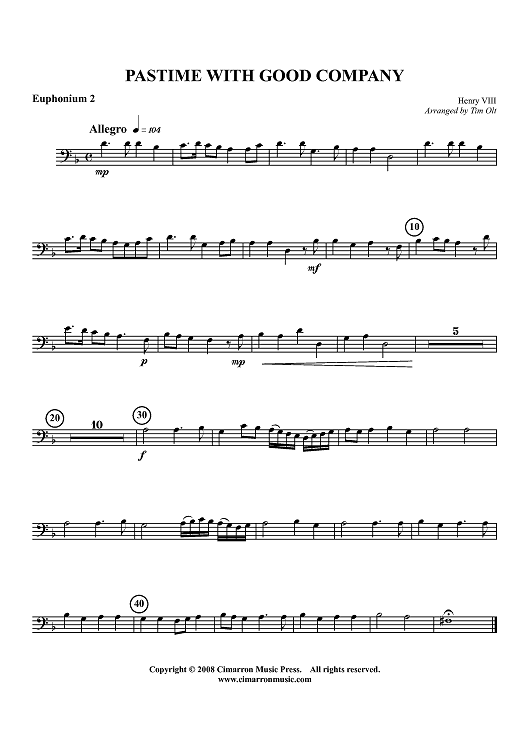 Digital Sheet Music for Pastime with Good Company - Euphonium 2 BC/TC by Tim Olt, Henry VIII scored for Tuba Quartet; id:413724