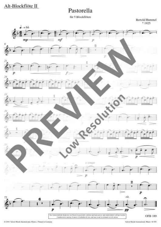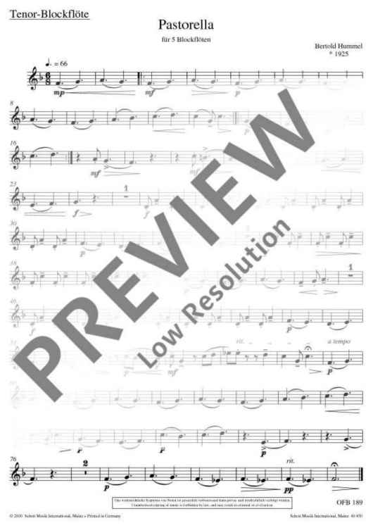 "Pastorella - Score and Parts" Sheet Music by Bertold Hummel