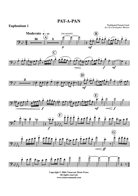 Digital Sheet Music for Pat-a-Pan - Euphonium 1 BC/TC by Christopher Warren, Traditional French Carol scored for Tuba Quartet; id:356605