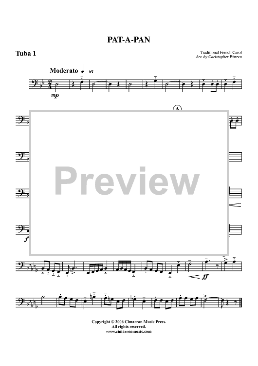 Digital Sheet Music for Pat-a-Pan - Tuba 1 by Christopher Warren, Traditional French Carol scored for Tuba Quartet; id:356607