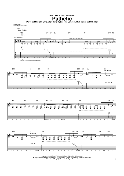 Digital Sheet Music for Pathetic by Chris Adler, Will Adler, Randy Blythe, John Campbell, Lamb Of God, Mark Morton scored for Guitar Tab; id:394607