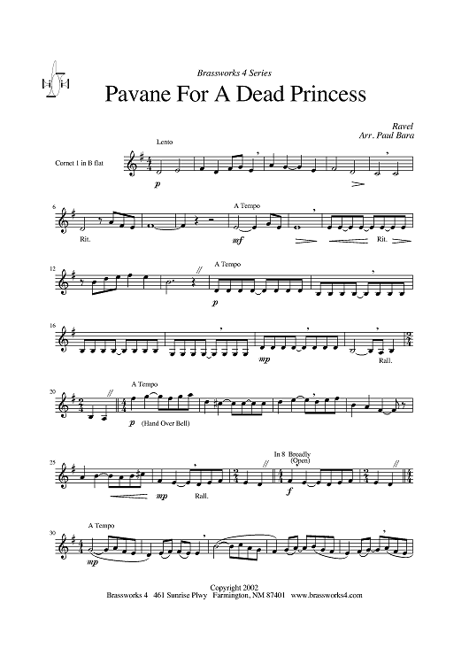 Digital Sheet Music for Pavane for a Dead Princess - Cornet in Bb by Paul Bara, Maurice Ravel scored for Brass Quartet; id:428468