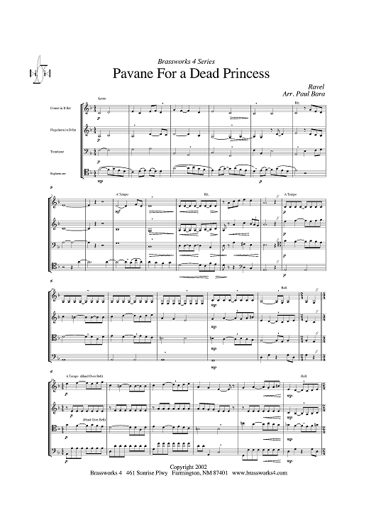 Digital Sheet Music for Pavane for a Dead Princess - Score by Paul Bara, Maurice Ravel scored for Brass Quartet; id:428467