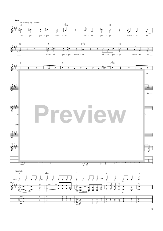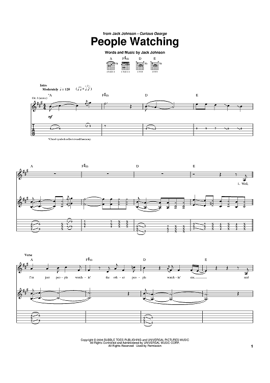 Digital Sheet Music for People Watching by Jack Johnson scored for Guitar Tab; id:393391
