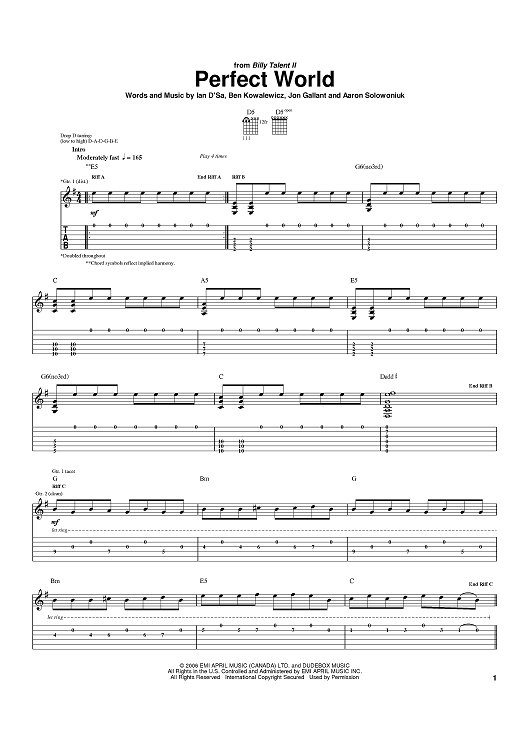 Digital Sheet Music for Perfect World by Billy Talent, Ian D'Sa, Jon Gallant, Ben Kowalewicz, Aaron Solowoniuk scored for Guitar Tab; id:396564