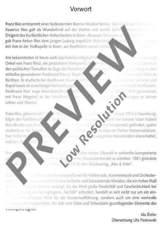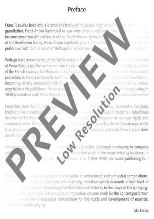 As a musician, Franz Ries (1846-1932) is almost forgotten today: the composer, violinist and 'Königl. Sächs. Hofmusikalienhändler' studied at the famous Paris Conservatoire to be a violinist. Then, the nephew of Beethoven's pupil and friend Ferdinand Ries started a glittering solo career which he had to end soon after for health reasons. From then on, he turned his whole attention to the music publishing business and occasionally even contributed little compositions, such as 'La Capricciosa' or the newly published 'Perpetuum mobile' Op. 34, to the programme of his publishing house. This is the fifth movement from his Suite No. 3 for violin and orchestra (or piano), created around 1870. The little virtuoso piece sweeps by like a whirlwind, hopefully taking only the listeners', not the violin playing performers' breath away!