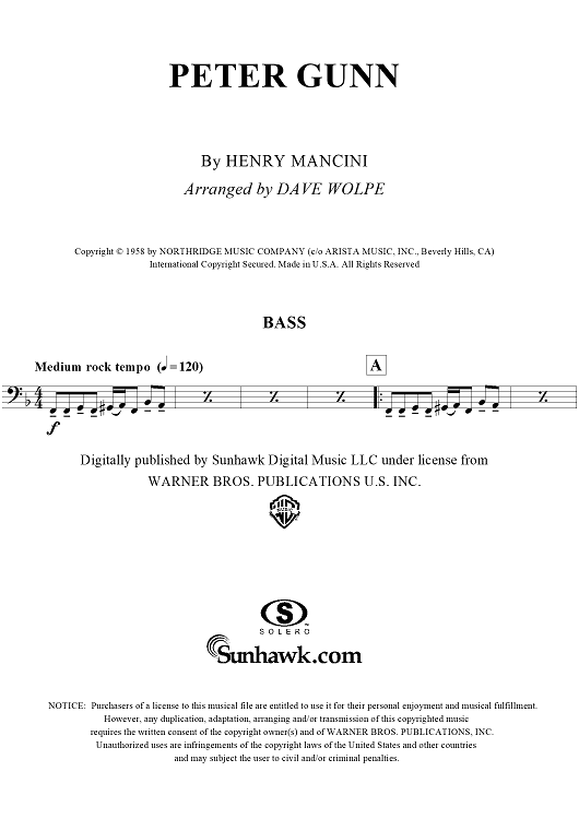 Digital Sheet Music for Peter Gunn - Bass by Henry Mancini, Dave Wolpe scored for Jazz Combo; id:304779