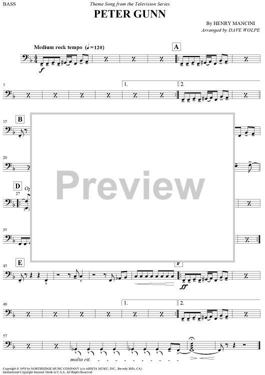 "Peter Gunn - Bass" Sheet Music by Henry Mancini
