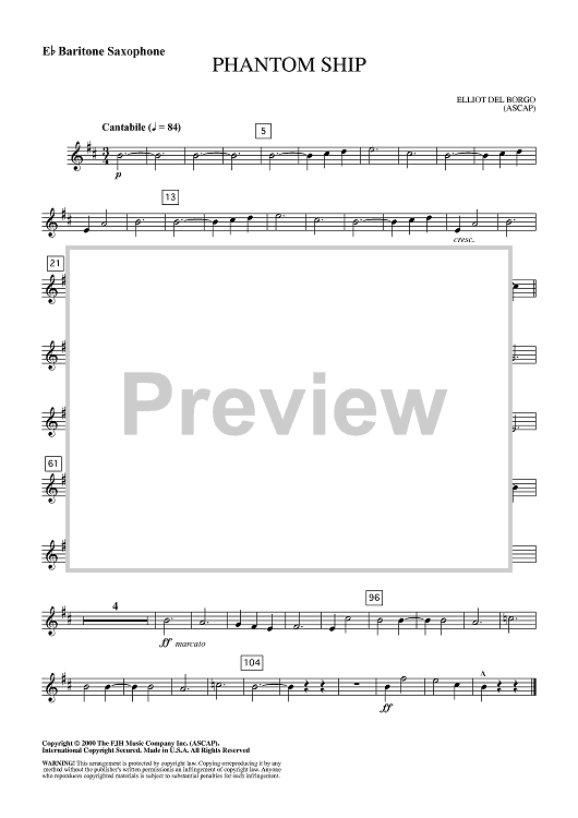 Digital Sheet Music for Phantom Ship - Baritone Sax by Elliot Del Borgo scored for Concert Band; id:404304