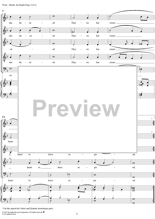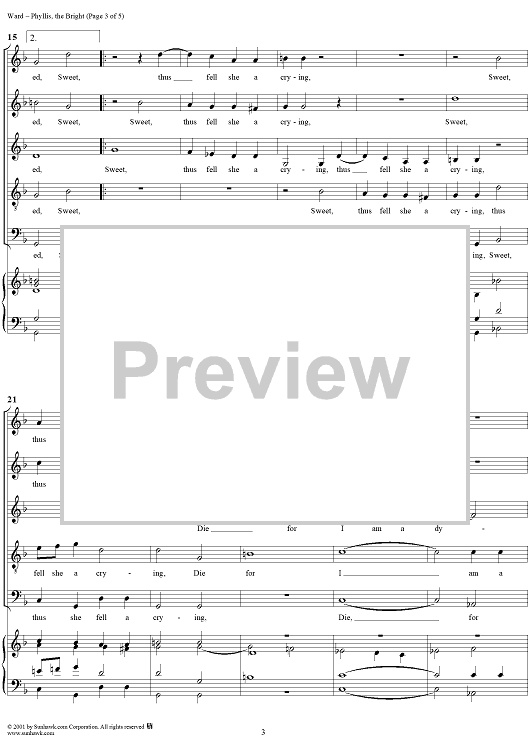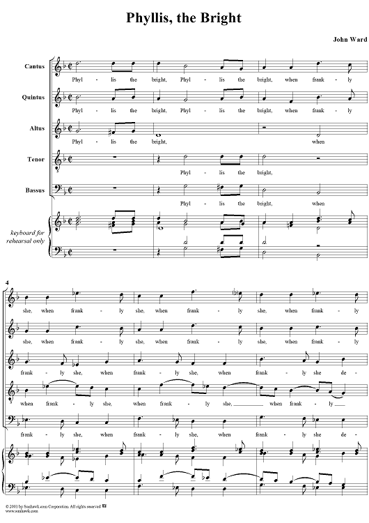 Digital Sheet Music for Phyllis, the Bright by John Ward scored for Mixed Chorus; id:249611