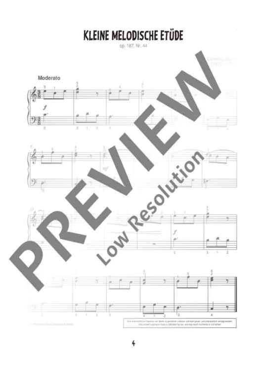 Studies by Bertini, Burgmüller, Czerny, Duvernoy, Gretchaninoff, Gurlitt, Heller, Kirchner, Lemoine, Schumann, Schoenmehl and others, arranged in order of progressive difficulty. These studies are fun as well as musically interesting and valuable. The volume could be introduced in combination with vol. 3 of the piano tutor Piano Kids and subsequently be used in conjuction with other teaching material [e.g. Piano Kids in Concert, ED 8440).
