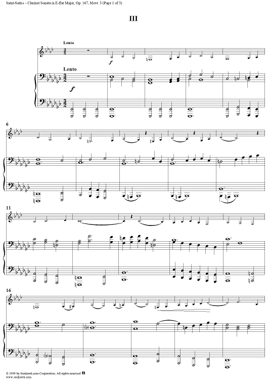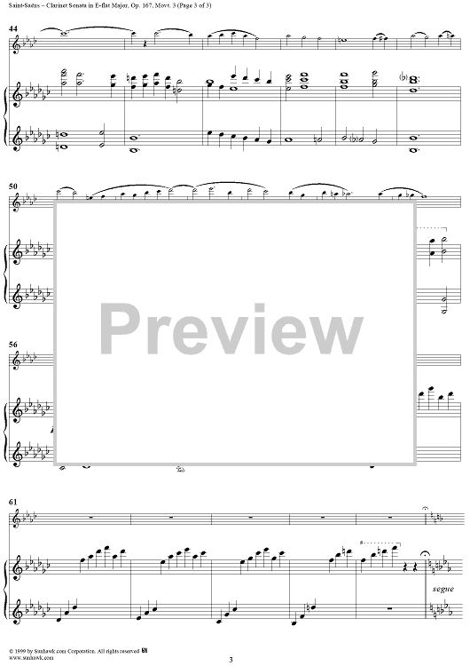 Digital Sheet Music for Piano Score - Movement 3 - Piano Score by Camille Saint-Saëns scored for Clarinet/Piano; id:118591
