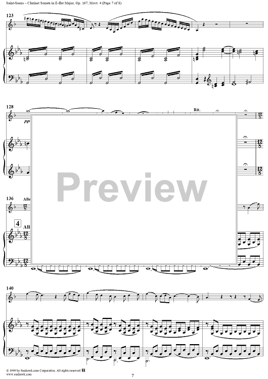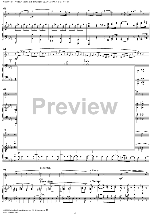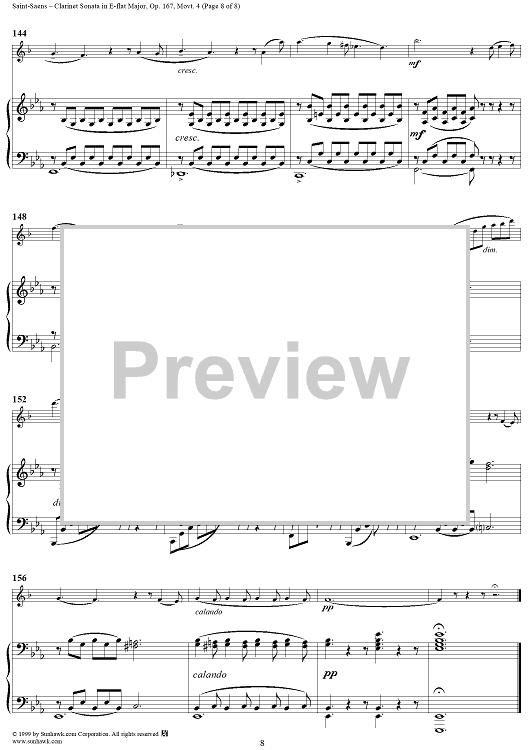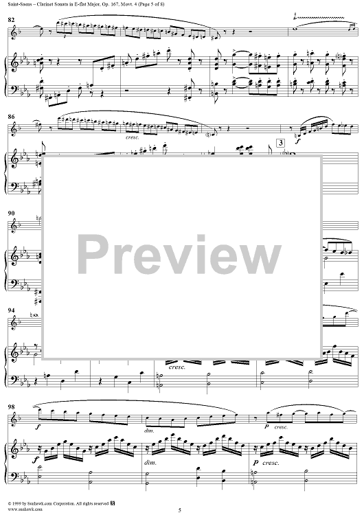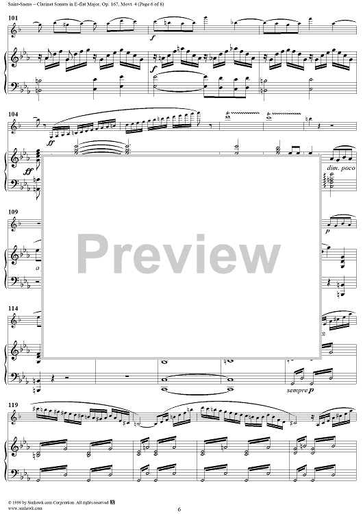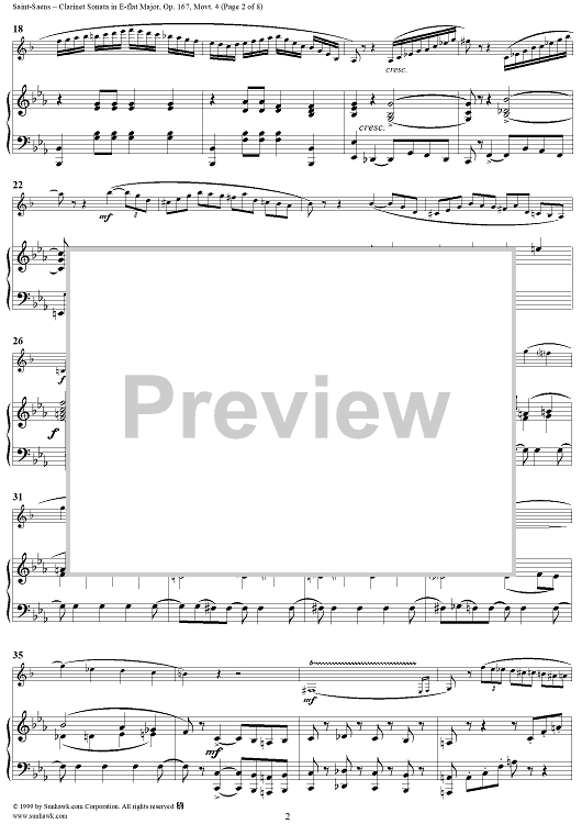 Digital Sheet Music for Piano Score - Movement 4 - Piano Score by Camille Saint-Saëns scored for Clarinet/Piano; id:119139