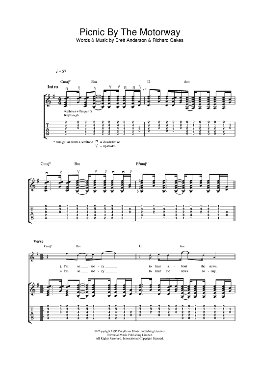Digital Sheet Music for Picnic By The Motorway by Suede scored for Guitar Tab; id:376343