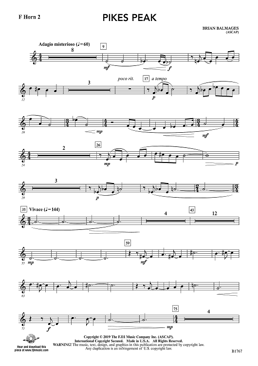 "Pikes Peak - F Horn 2" Sheet Music by Brian Balmages