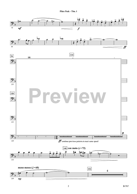 Digital Sheet Music for Pikes Peak - Trombone 1 by Brian Balmages scored for Concert Band; id:510453