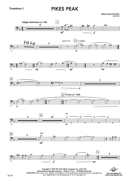 "Pikes Peak - Trombone 1" Sheet Music by Brian Balmages