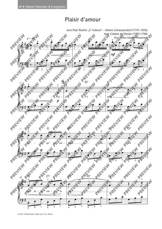 Digital Sheet Music for Plaisir D'Amour by Jean Paul Egide Martini, Hans-Guenter Heumann scored for Piano; id:483265