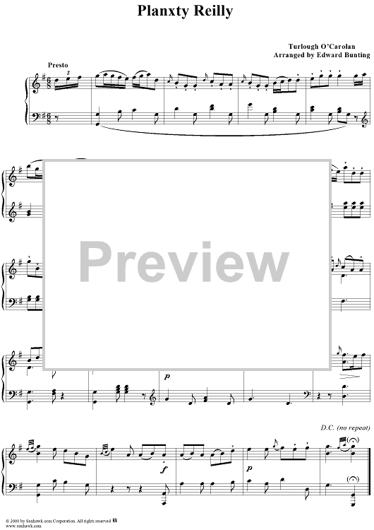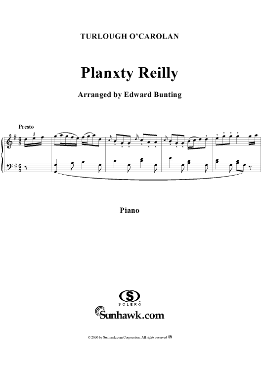 Digital Sheet Music for Planxty Reilly by , Turlough O'Carolan, Edward Bunting scored for Piano Solo; id:203990