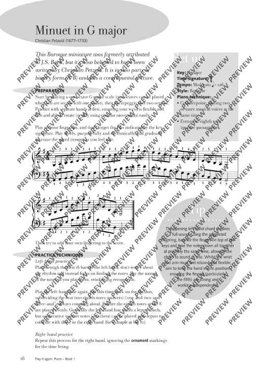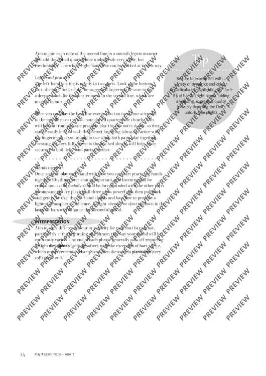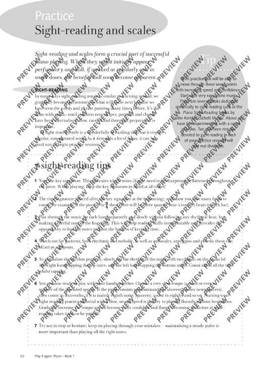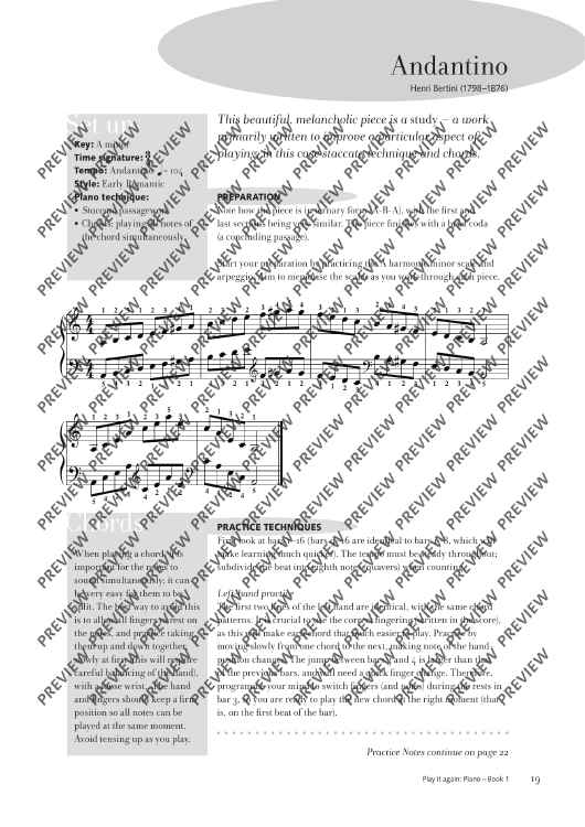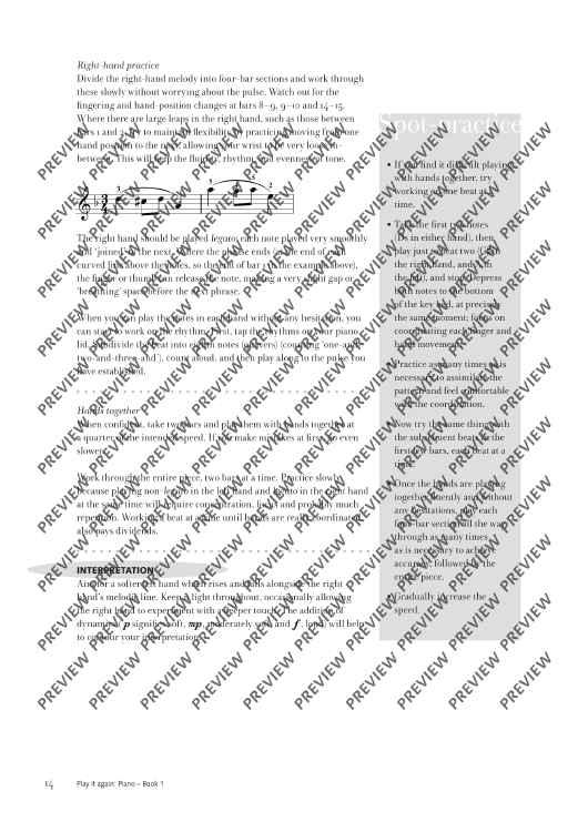 Did you use to play the piano? And would you like to play again? This is the first of three books of Play it again: Piano. It will reunite you with the keyboard using real pieces from the piano repertoire to teach specific techniques and tips, to get you playing fluently once again. The level of pieces in this first book progresses from around UK grades 1 to 4 (elementary to intermediate). “I used to play the piano…” Aimed at ‘returning’ players who have spent some time away from the keyboard, Play it again: Piano gives you the confidence to revisit this fulfilling pastime and go beyond what you previously thought you could achieve. Each of the 28 pieces in Book 1 is accompanied by two full pages of easy-to-understand practice tips, all designed to get your fingers speeding comfortably across the keys once again! There are more comprehensive Piano Technique and Theory sections at the front and back of each book, so you can also delve deeper to regain a fuller understanding of music and technique. A refresher course for all abilities Each book is arranged in 4 progressive sections, with Book 1 moving from ‘Elementary’ to ‘Intermediate’, and Book 2 taking you from ‘Late Intermediate’ to ‘Late Advanced’. Dip in and out wherever your level of playing suits: this two-book course starts with simple and elegant miniatures and concludes with the famously showy Prelude in C-sharp minor by Rachmaninoff! Confident pianists could start with Book 2, but there is a wealth of delightful repertoire and valuable practice tips in Book 1 – it’s always useful to go ‘back to basics’. From Schumann to shuffles Baroque, Classical and Romantic works sit alongside Jazz, Ragtime, contemporary or traditional pieces at every level, so each lesson brings something different and you’ll learn to play in a range of styles, some of which may be new to your fingers. If you often find yourself saying “I used to play the piano…” but wish you still did, then Play it again: Piano is the resource for you