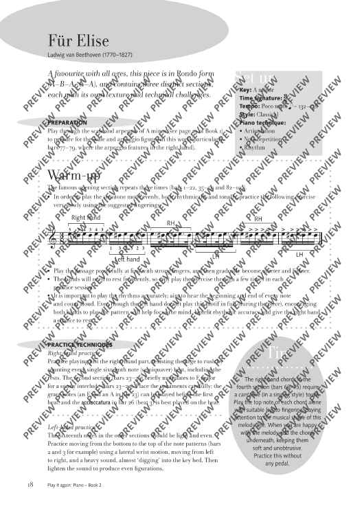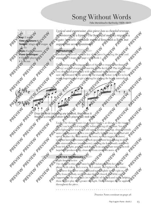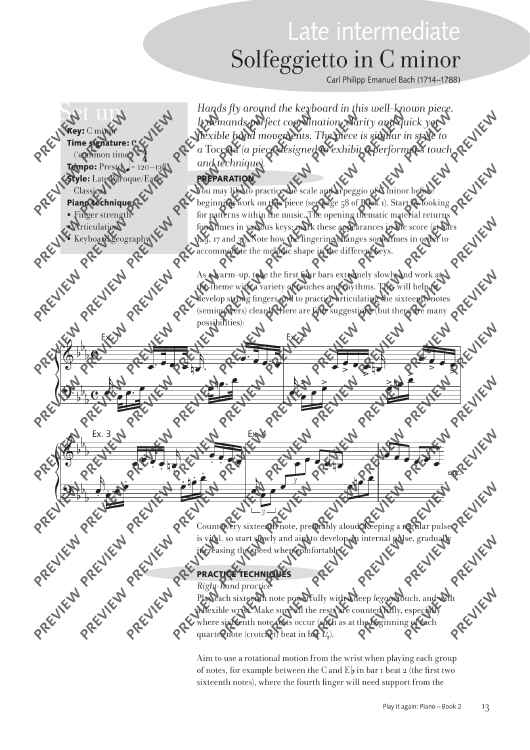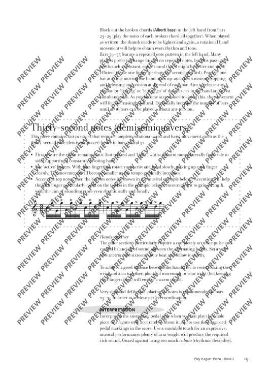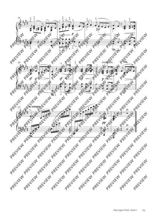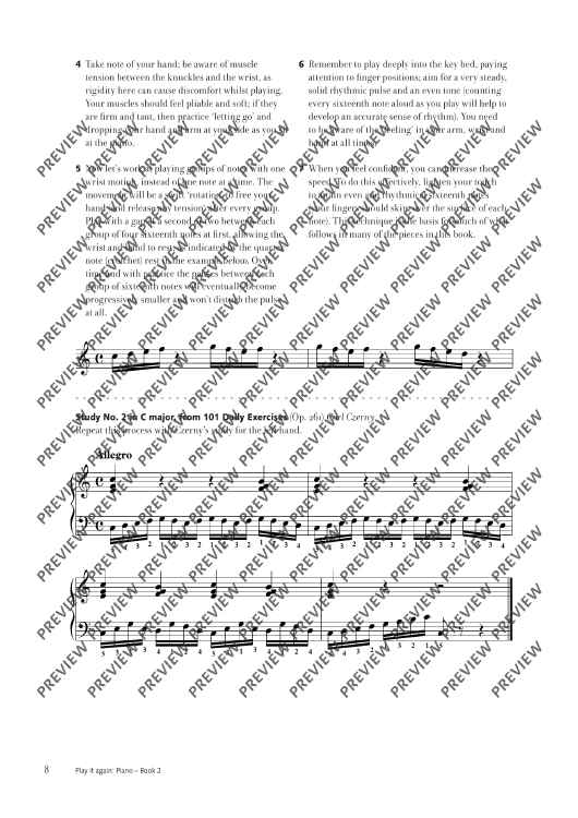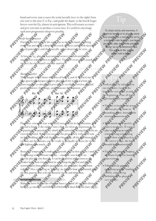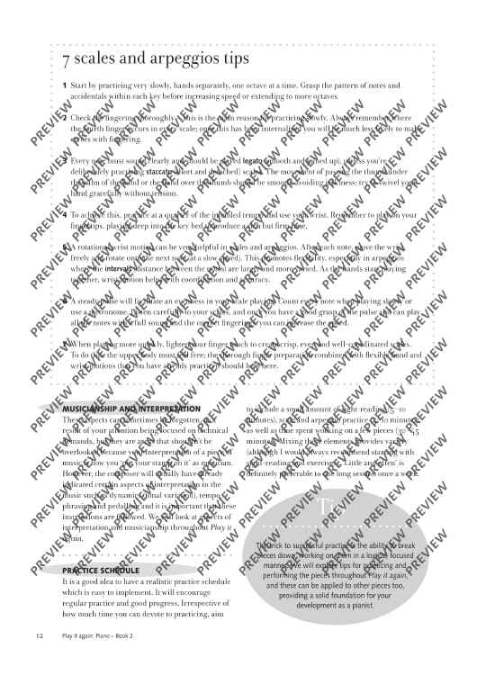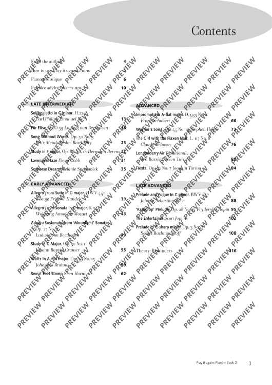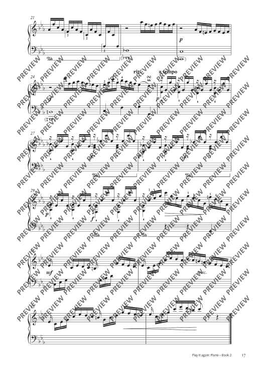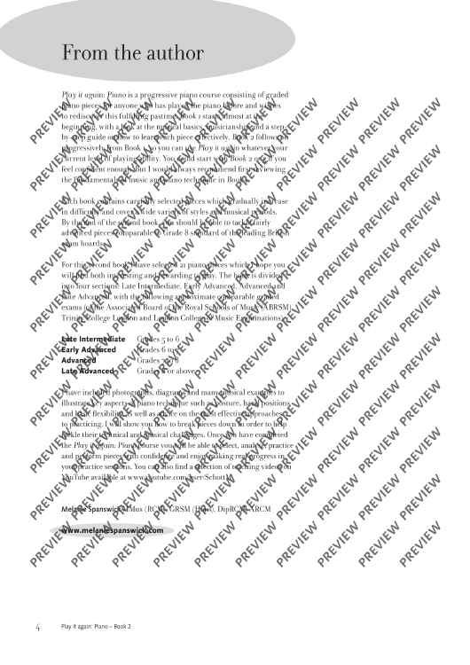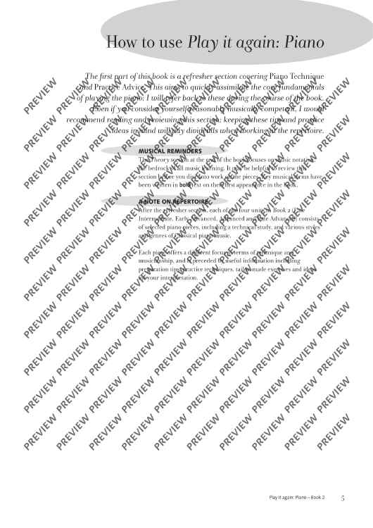 Did you use to play the piano? Would you like to play again? Play it again: Piano uses real pieces from the piano repertoire to teach specific techniques and tips, getting you playing fluently once again. This is the second book, which is for the more confident ‘former’ piano player or for those continuing their journey from Book 1. The level of pieces in this second book progresses from around UK grades 5 to 8 (intermediate to late advanced). “I used to play the piano…” Aimed at ‘returning’ players who have spent some time away from the keyboard, Play it again: Piano gives you the confidence to revisit this fulfilling pastime and go beyond what you previously thought you could achieve. Each of the 21 pieces in Book 2 is accompanied by two full pages of easy-to-understand practice tips, all designed to get your fingers speeding comfortably across the keys once again! There are more comprehensive Piano Technique and Theory sections at the front and back of each book, so you can also delve deeper to regain a fuller understanding of music and technique. A refresher course for all abilities Each book is arranged in 4 progressive sections, with Book 1 moving from ‘Elementary’ to ‘Intermediate’, and Book 2 taking you from ‘Late Intermediate’ to ‘Late Advanced’. Dip in and out wherever your level of playing suits: this two-book course starts with simple and elegant miniatures and concludes with the famously showy Prelude in C-sharp minor by Rachmaninoff! Confident pianists could start with Book 2, but there is a wealth of delightful repertoire and valuable practice tips in Book 1 – it’s always useful to go ‘back to basics’. From Schumann to shuffles Baroque, Classical and Romantic works sit alongside Jazz, Ragtime, contemporary or traditional pieces at every level, so each lesson brings something different and you’ll learn to play in a range of styles, some of which may be new to your fingers. If you often find yourself saying “I used to play the piano…” but wish you still