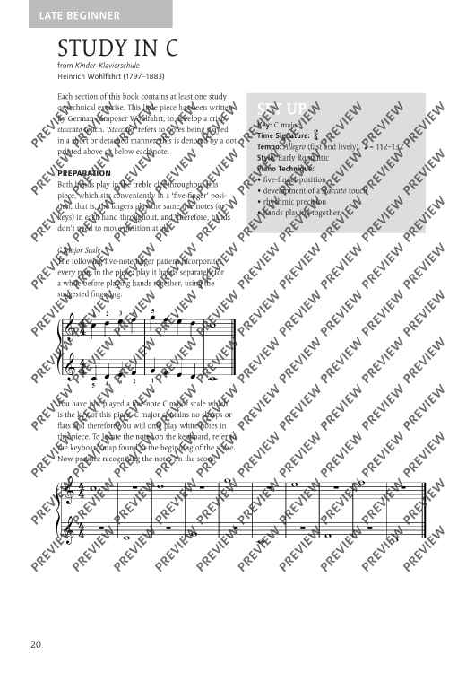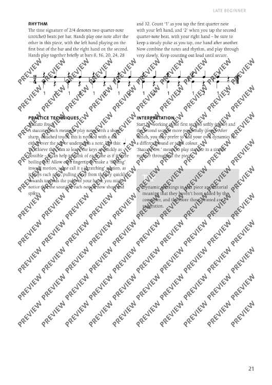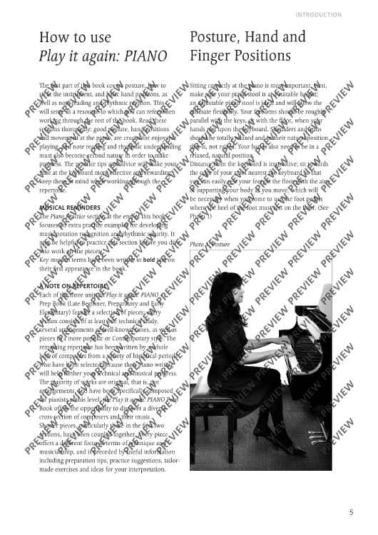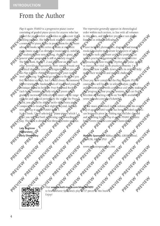 Did you use to play the piano? And would you like to play again? Play it again: Piano - Prep Book prepares returning pianists for Books 1–3 of the successful Play it again series by Melanie Spanswick. It will reunite you with the keyboard using real pieces that cover a wide range of styles and musical periods. It explicitly teaches specific basic techniques and gives tips to get you playing fluently once again. Each of the carefully selected 39 pieces in the Prep Book is accompanied by easy-to-understand practice tips, all designed to get your fingers speeding comfortably across the keys once again! The level of pieces in this book progresses from UK grades pre-grade 1 to grade 1. “I used to play the piano…” Aimed at ‘returning’ players who have spent some time away from the keyboard, Play it again: Piano gives you the confidence to revisit this fulfilling pastime and go beyond what you previously thought you could achieve. Each piece is accompanied by two full pages of easy-to-understand practice tips, all designed to get your fingers speeding comfortably across the keys once again! There are more comprehensive Piano Technique and Theory sections at the front and back of each book, so you can also delve deeper to regain a fuller understanding of music and technique. A refresher course for all abilities Each book is arranged in 4 progressive sections. Dip in and out wherever your level of playing suits: this four-book course starts with simple and elegant miniatures and progresses up to showy preludes by Rachmaninoff! Confident pianists could start with a later book, but there is a wealth of delightful repertoire and valuable practice tips in the Prep Book and Book 1 – it’s always useful to go ‘back to basics’. From Schumann to shuffles Baroque, Classical and Romantic works sit alongside Jazz, Ragtime, contemporary or traditional pieces at every level, so each lesson brings something different and you’ll learn to play in a range of styles, some of which may be new t