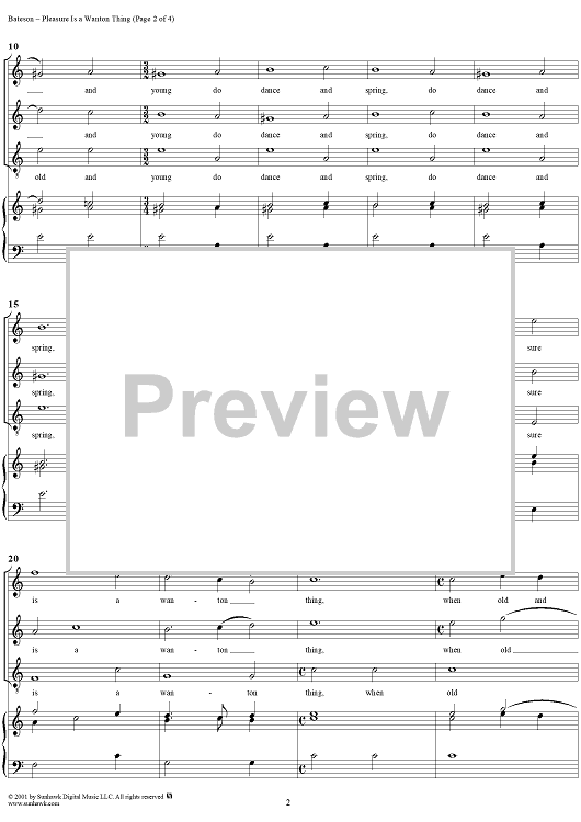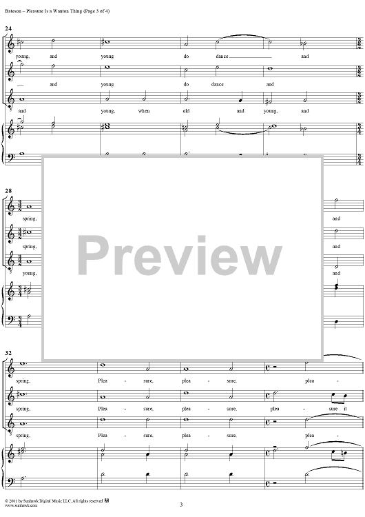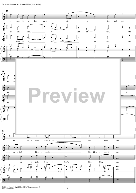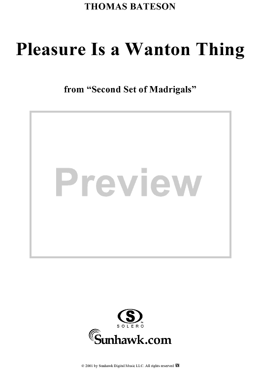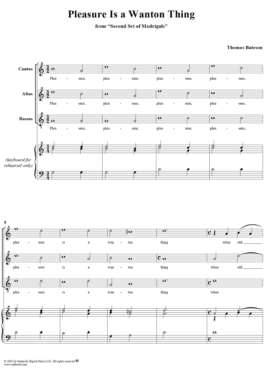 Digital Sheet Music for Pleasure Is a Wanton Thing by Thomas Bateson scored for Mixed Chorus; id:259570