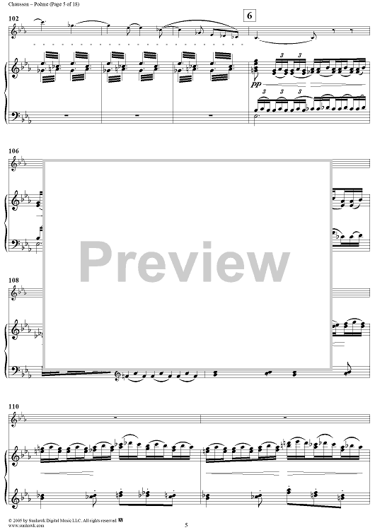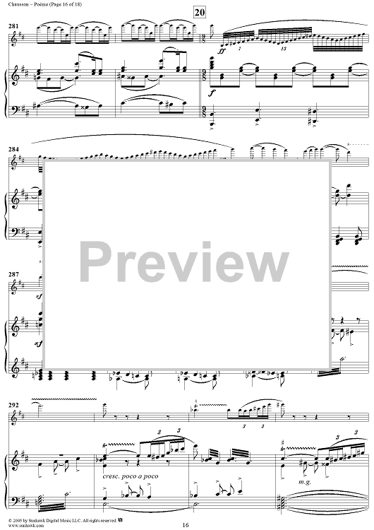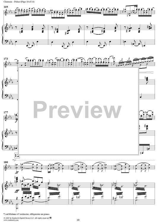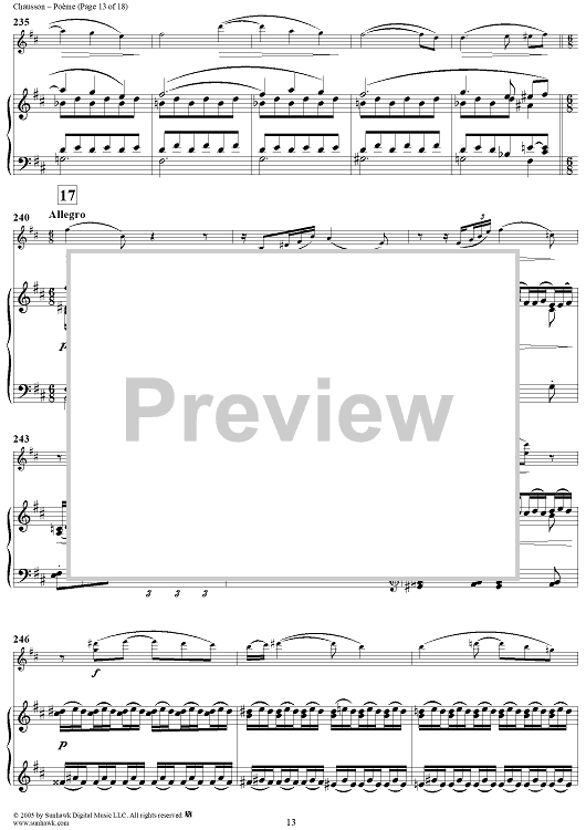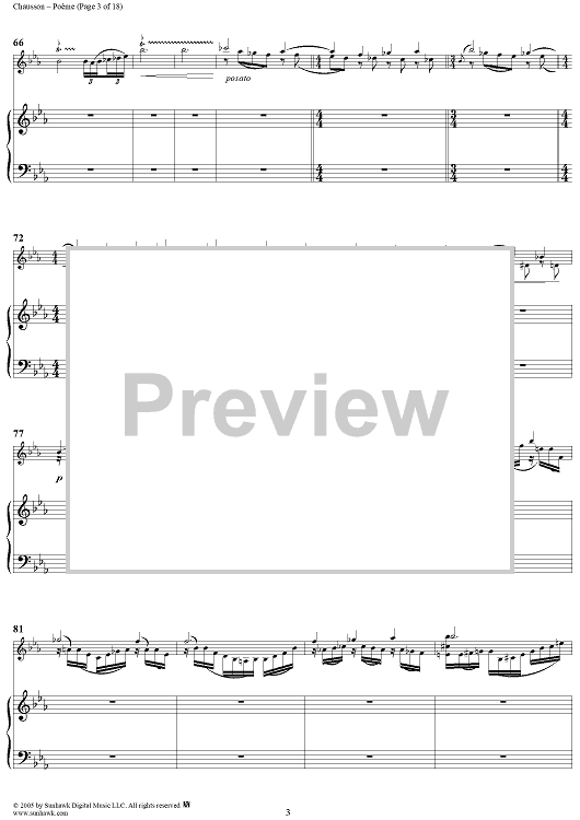 Digital Sheet Music for Poème - Piano Score by Ernest Chausson scored for Violin/Piano; id:312201