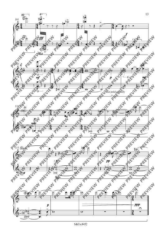 In his programme note, Hesketh describes a conceit as an extended metaphor which can govern part of or an entire poem thereby leading to a more sophisticated understanding of the subject. Within the 20 minute six movement work, Poetic Conceits takes an assortment of thematic material and views it from different angles by continuous manipulation through statement, recall and elaboration. The effect is a continuous arc with movements merging into each other, sharing harmonic material to create focal points for pianistic technique and musicality.