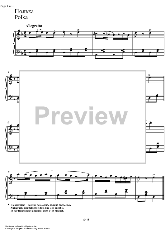 Digital Sheet Music for Polka by Mikhail Glinka scored for Piano Solo; id:330347