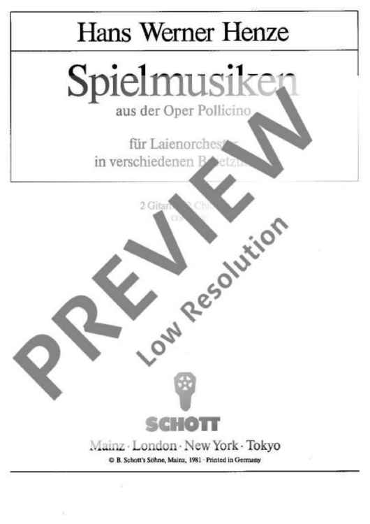 Digital Sheet Music for Pollicino Spielmusiken - Guitar 1 And 2 by Hans Werner Henze scored for Orchestra; id:482068