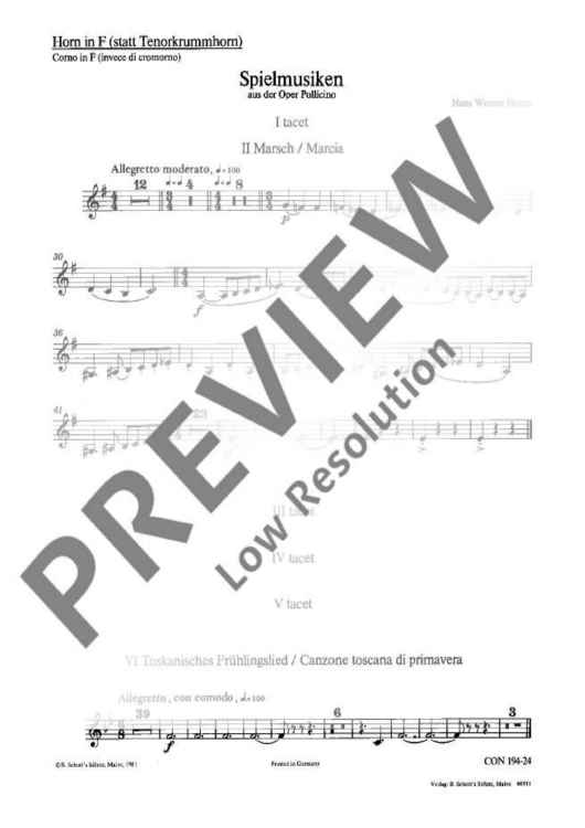 Digital Sheet Music for Pollicino Spielmusiken - Horn in F by Hans Werner Henze scored for Orchestra; id:482052