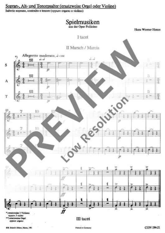 Digital Sheet Music for Pollicino Spielmusiken - Organ / 3 Psalter by Hans Werner Henze scored for Orchestra; id:482055
