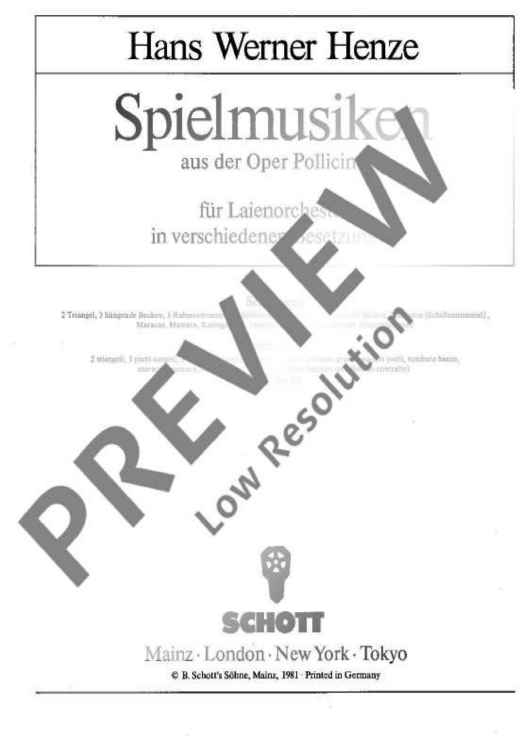 Digital Sheet Music for Pollicino Spielmusiken by Hans Werner Henze scored for Orchestra; id:482388