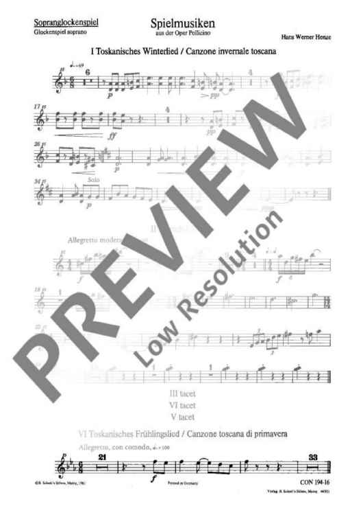 Digital Sheet Music for Pollicino Spielmusiken - Soprano Glockenspiel by Hans Werner Henze scored for Orchestra; id:482059