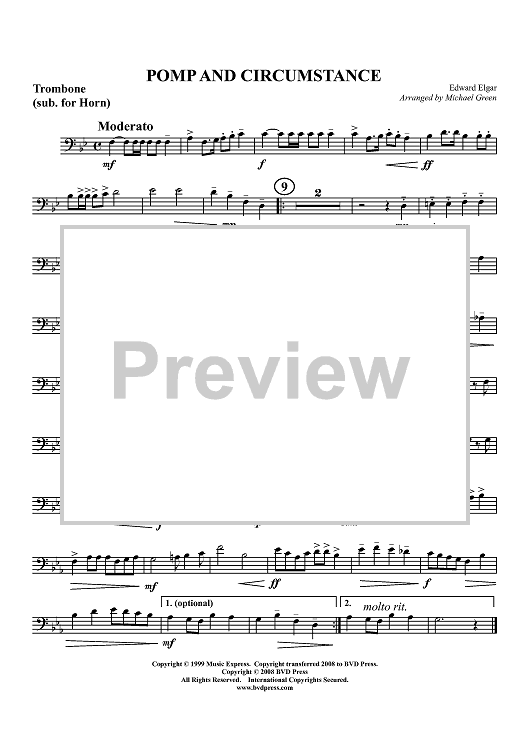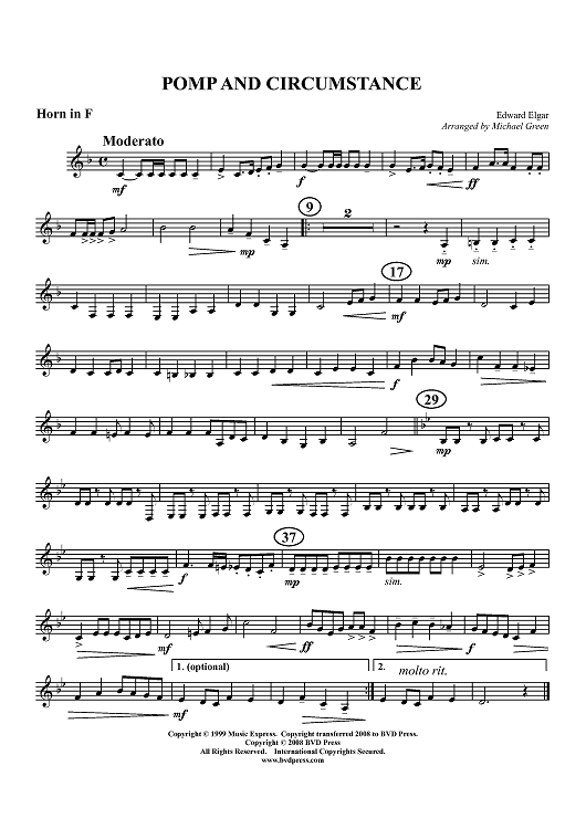 "Pomp and Circumstance - Horn in F (plus optional part for Trombone)" Sheet Music by Edward Elgar