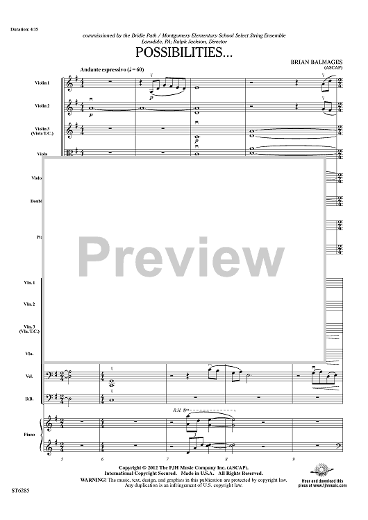 Digital Sheet Music for Possibilities … - Score by Brian Balmages scored for String Orchestra; id:432097